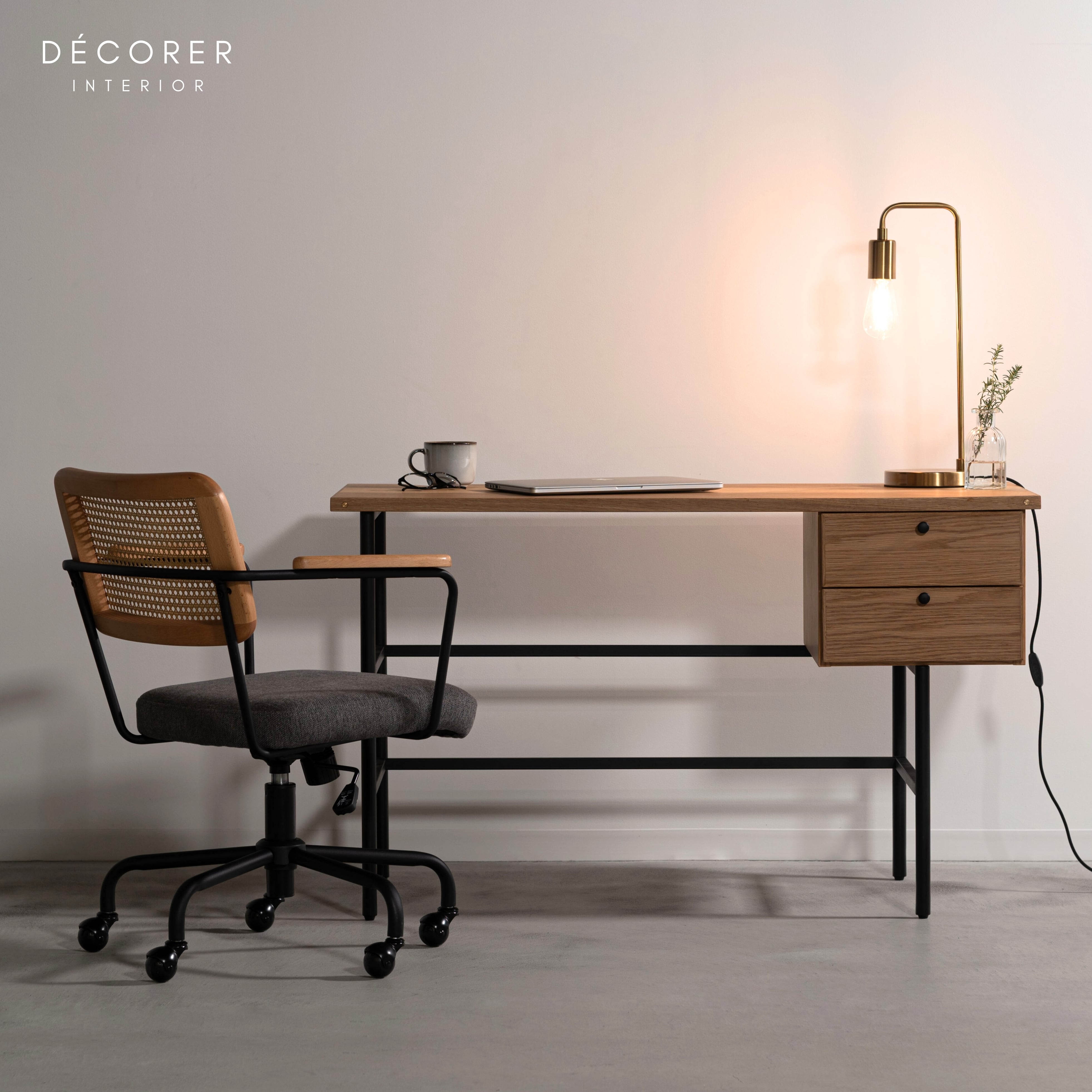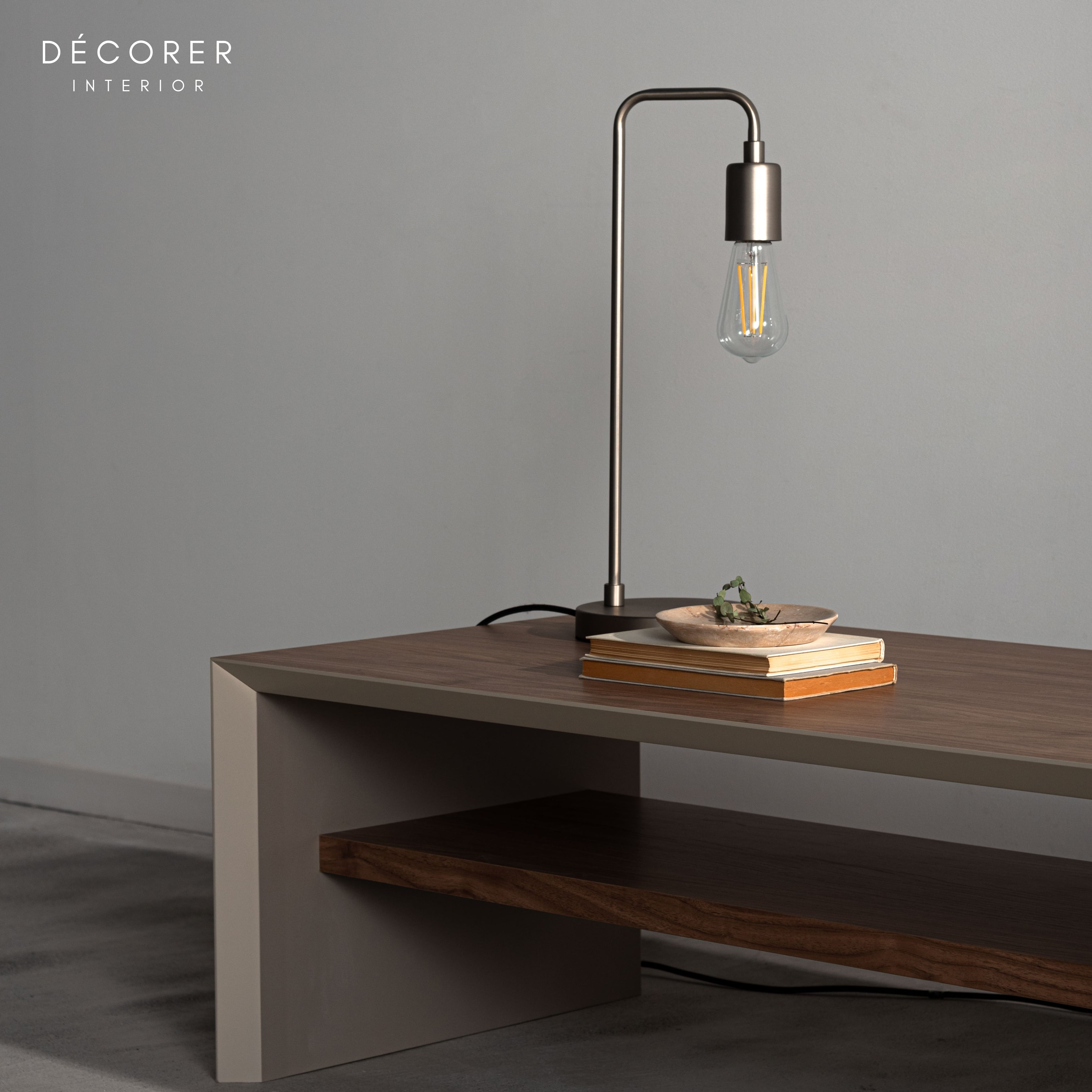 シェードの無いタイプで、光りの美しさを存分に感じられるデザインです。デスクの上ではもちろん、キャビネットやテーブルの上など、置くだけで存在感を見せてくれるアイテムです。