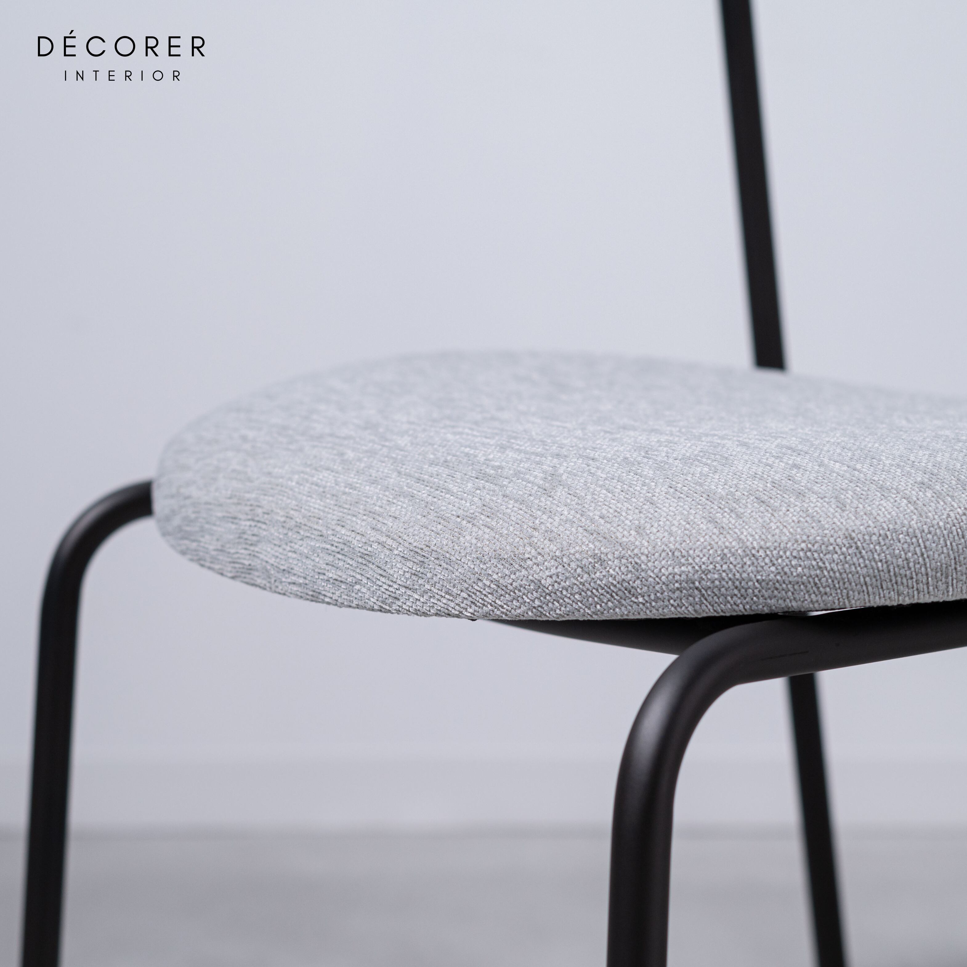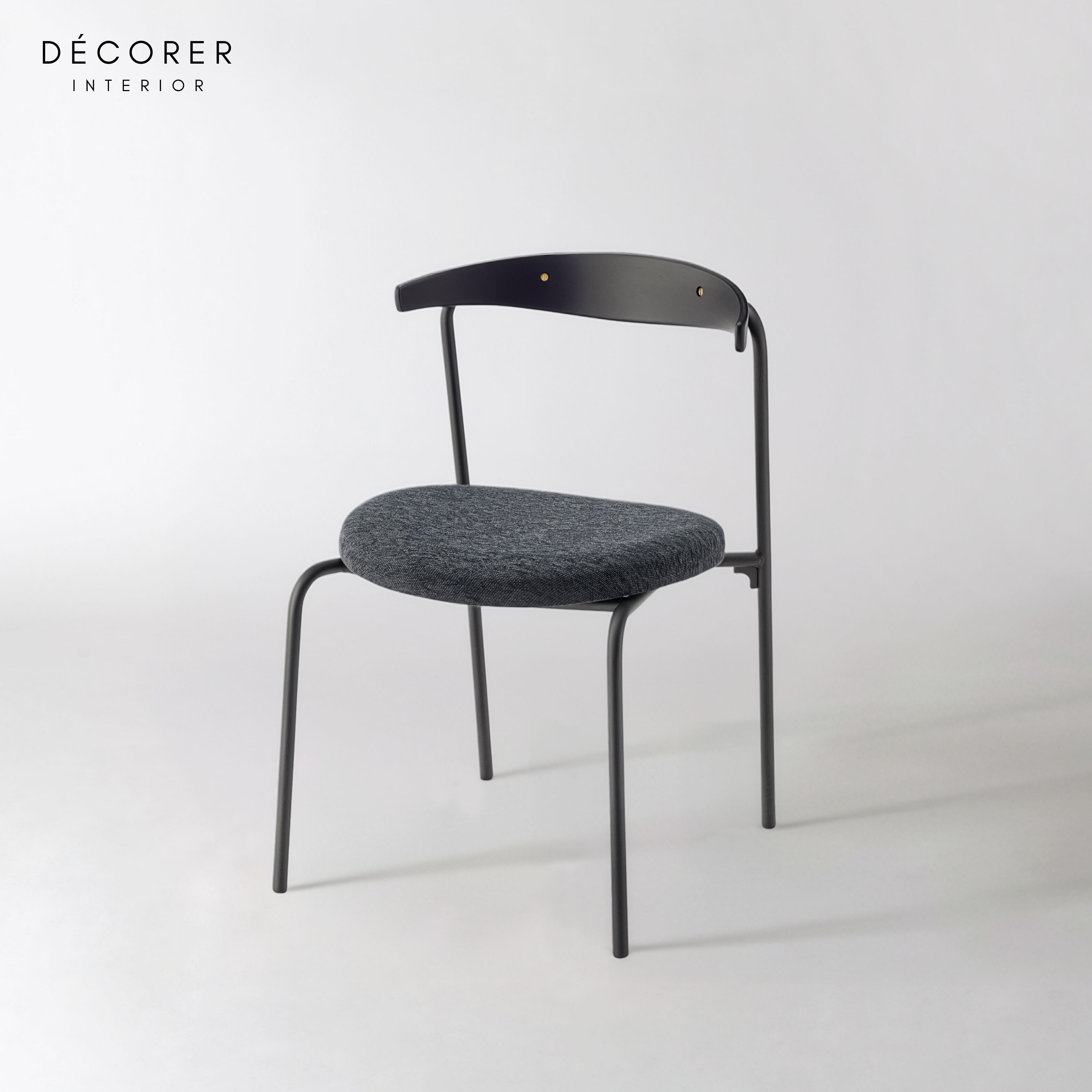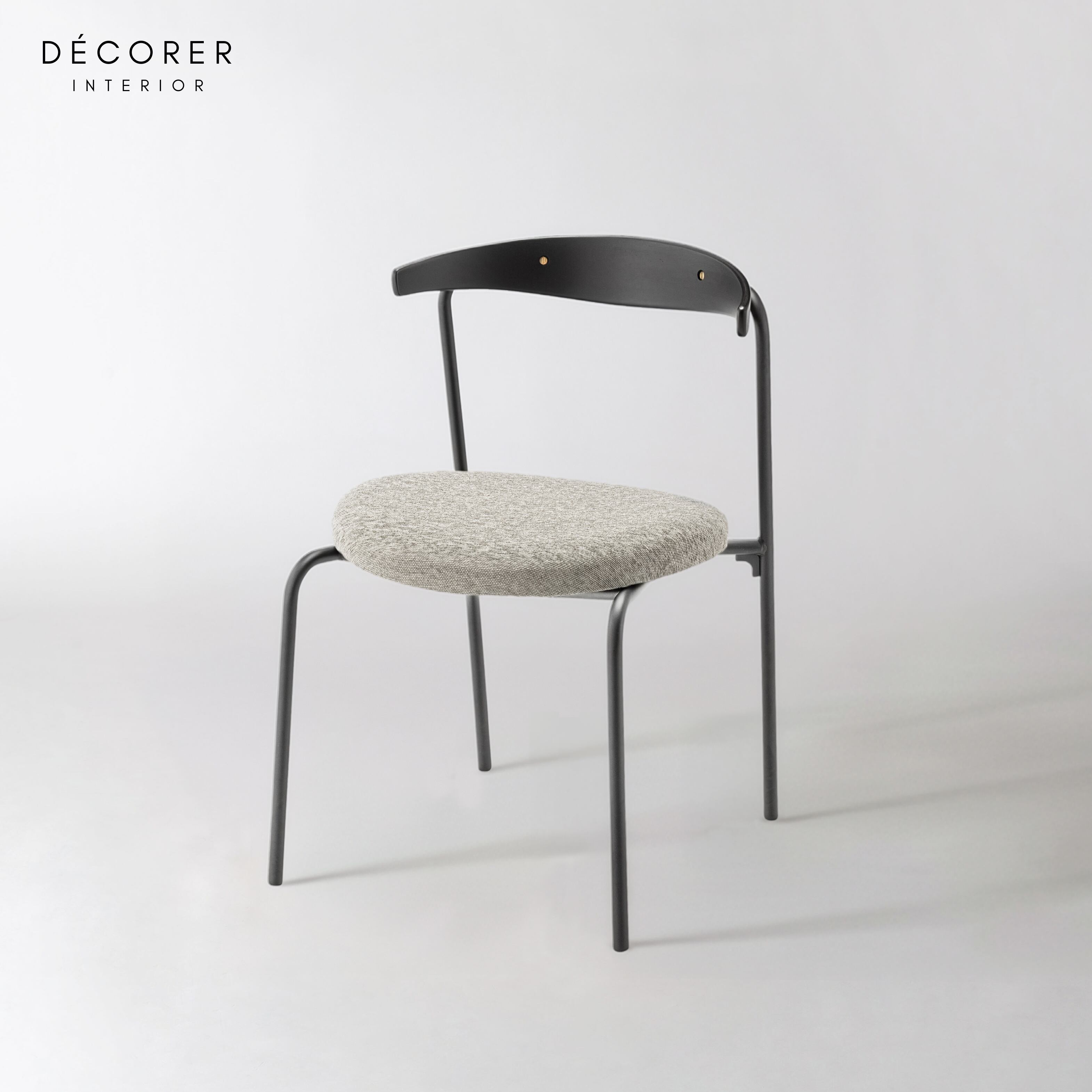 アーチ状に湾曲させた天然木の背もたれと、ファブリックを使用した座面に細身のスチール脚を組み合せ、スタイリッシュな雰囲気に仕上げたダイニングチェア。
