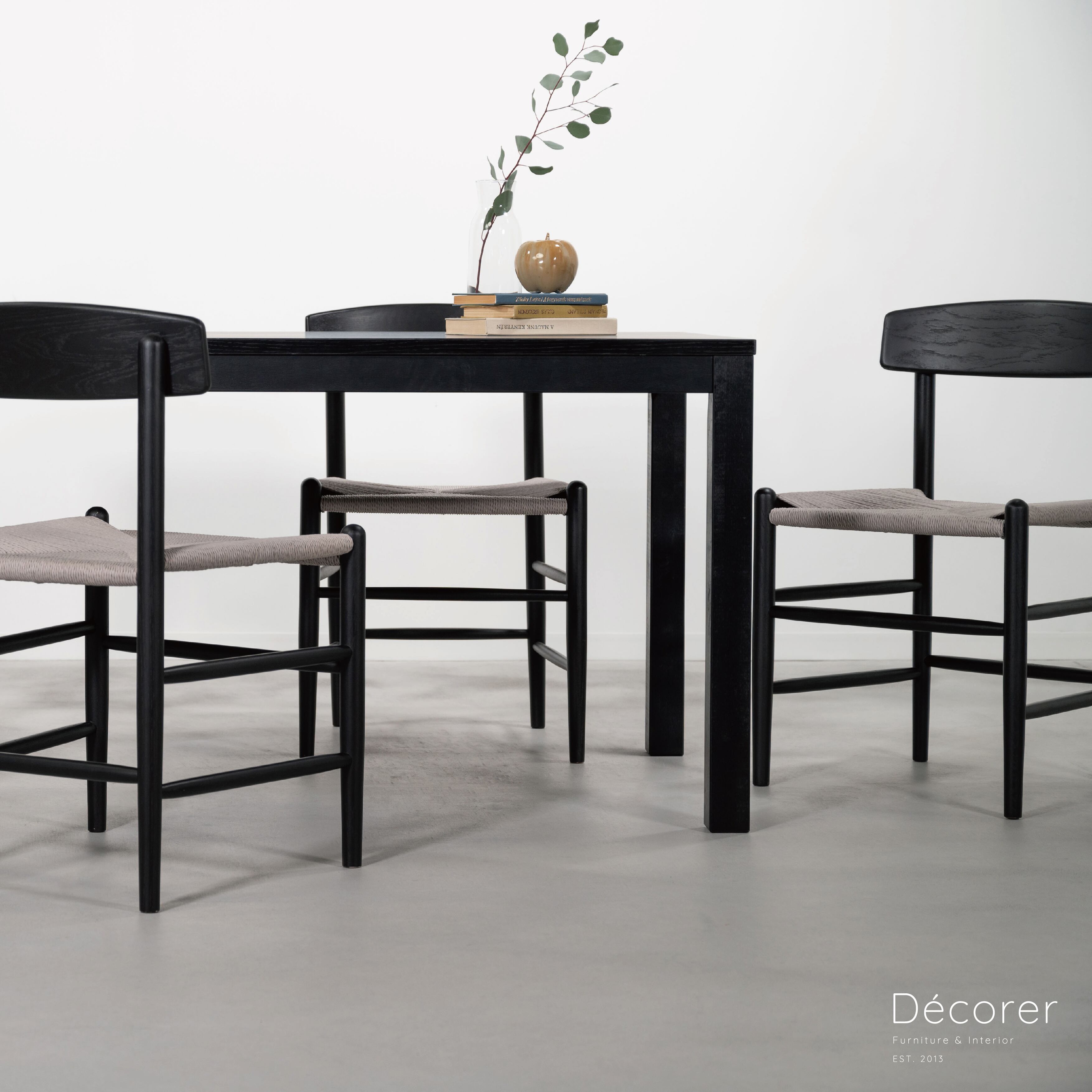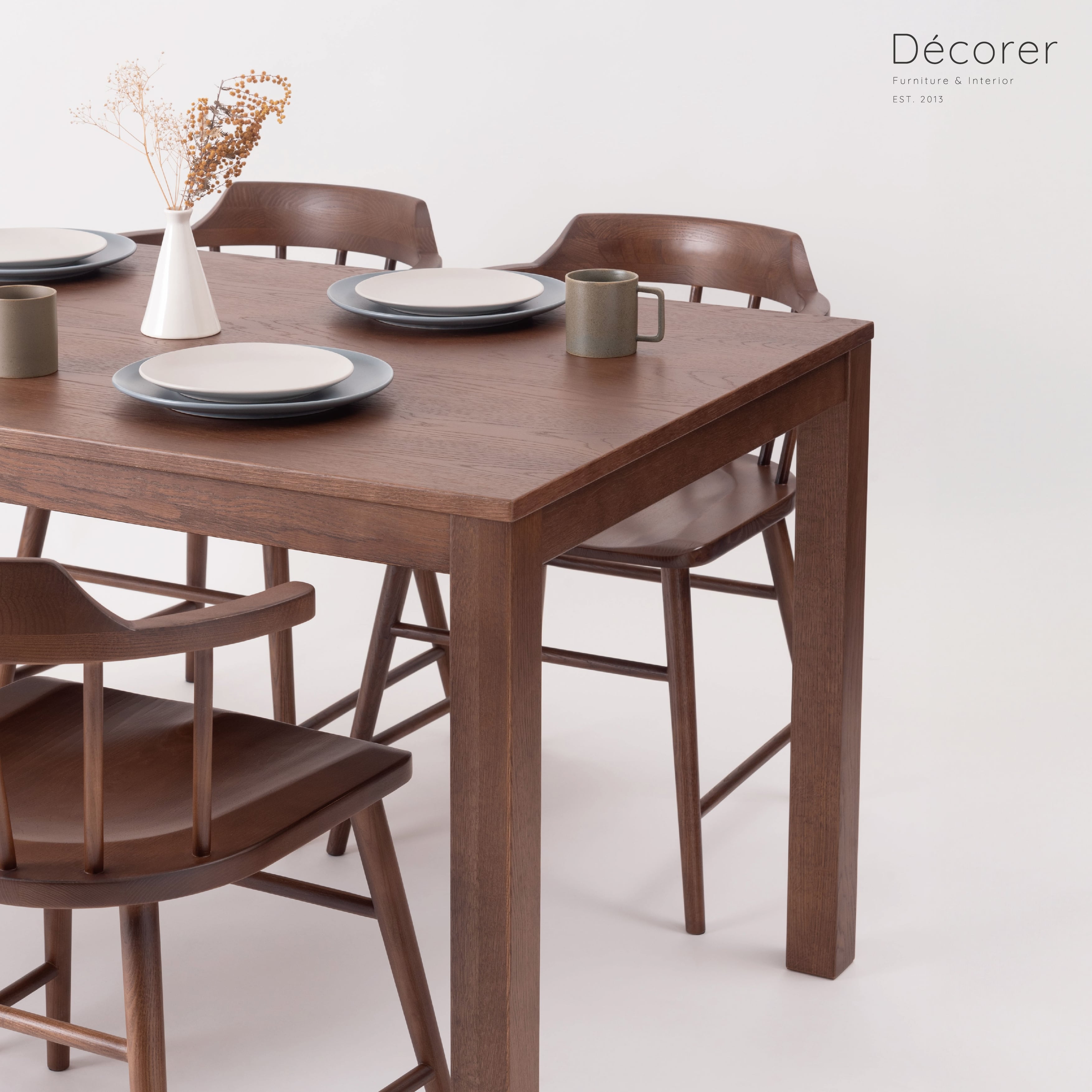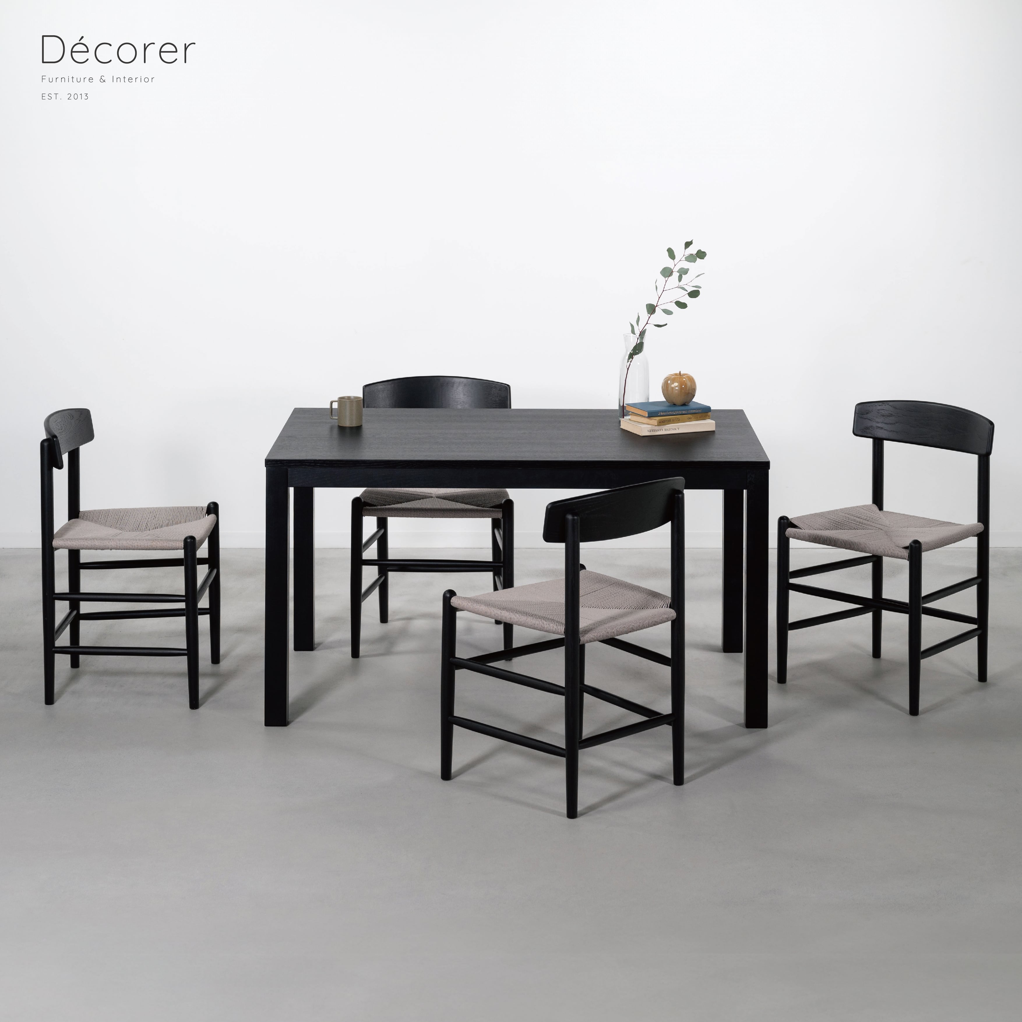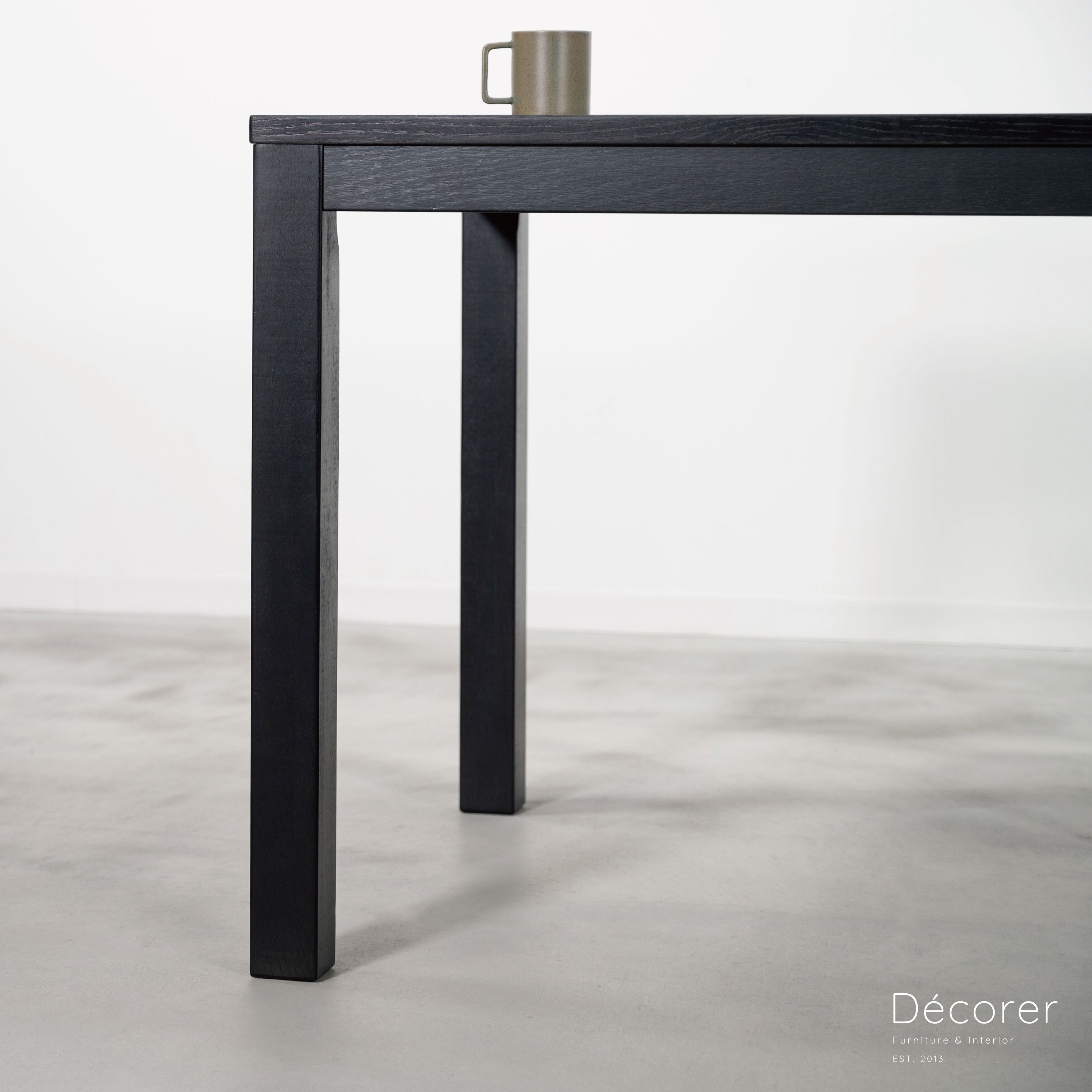 エッジの効いた直線的で普遍的なデザインのダイニングテーブル。